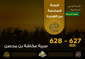 في ربيع الأول منها أو الآخر بعث رسول الله ﷺ عكاشة بن محصن في أربعين رجلا إلى [غرو مرزوق] فهربوا منه ونزل على مياههم وبعث في آثارهم وأخذ منهم مائتي بعير فاستاقها إلى المدينة. [السيرة النبوية لابن كثير 3/338]
